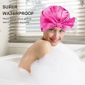 2 Pieces Shower Caps Silky Satin Lined Shower Cap For Women Long Hair, Waterproof Extra Large Hair Cap Adjustable Reusable Bath Hair Hat For Shower, Silk Cap For Kids Girls (Black And Rose Red)