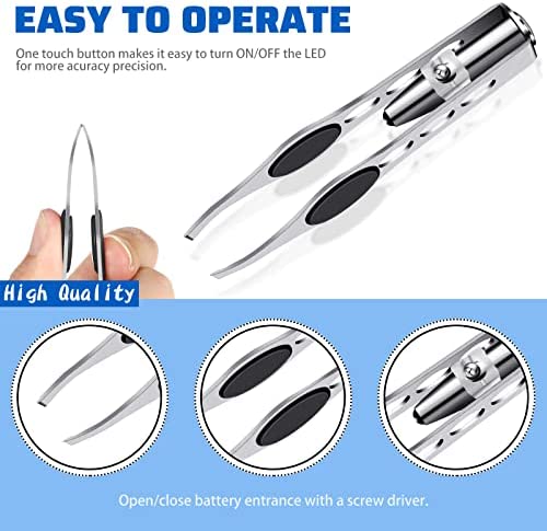 Proper size: stainless steel LED tweezer is about 9.8 x 2 x 1.6 cm/ 3.85 x 0.78 x 0.62 inch, which is delicate, light in weight and small, so you can take it with you to anywhere at any time and the eyebrow tweezers hair removal makeup is easy to use without much effort or skill
