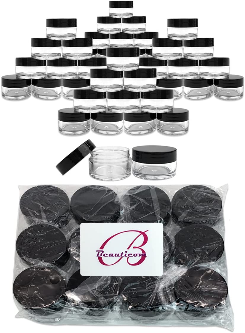 20 gram/20ml Empty Clear Small Round Travel Container Jar Pots with Lids for Make Up Powder, Eyeshadow Pigments, Lotion, Creams, Lip Balm, Lip Gloss, Samples (48 Pieces, Black)