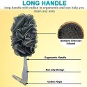 2Pack Bamboo Charcoal Fiber Exfoliating Loofah Luffa Loofa Bath Back Brush On A Stick – Long Handle With Radian Is Ergonomic For Men And Women – Shower Sponge Body Back Scrubber