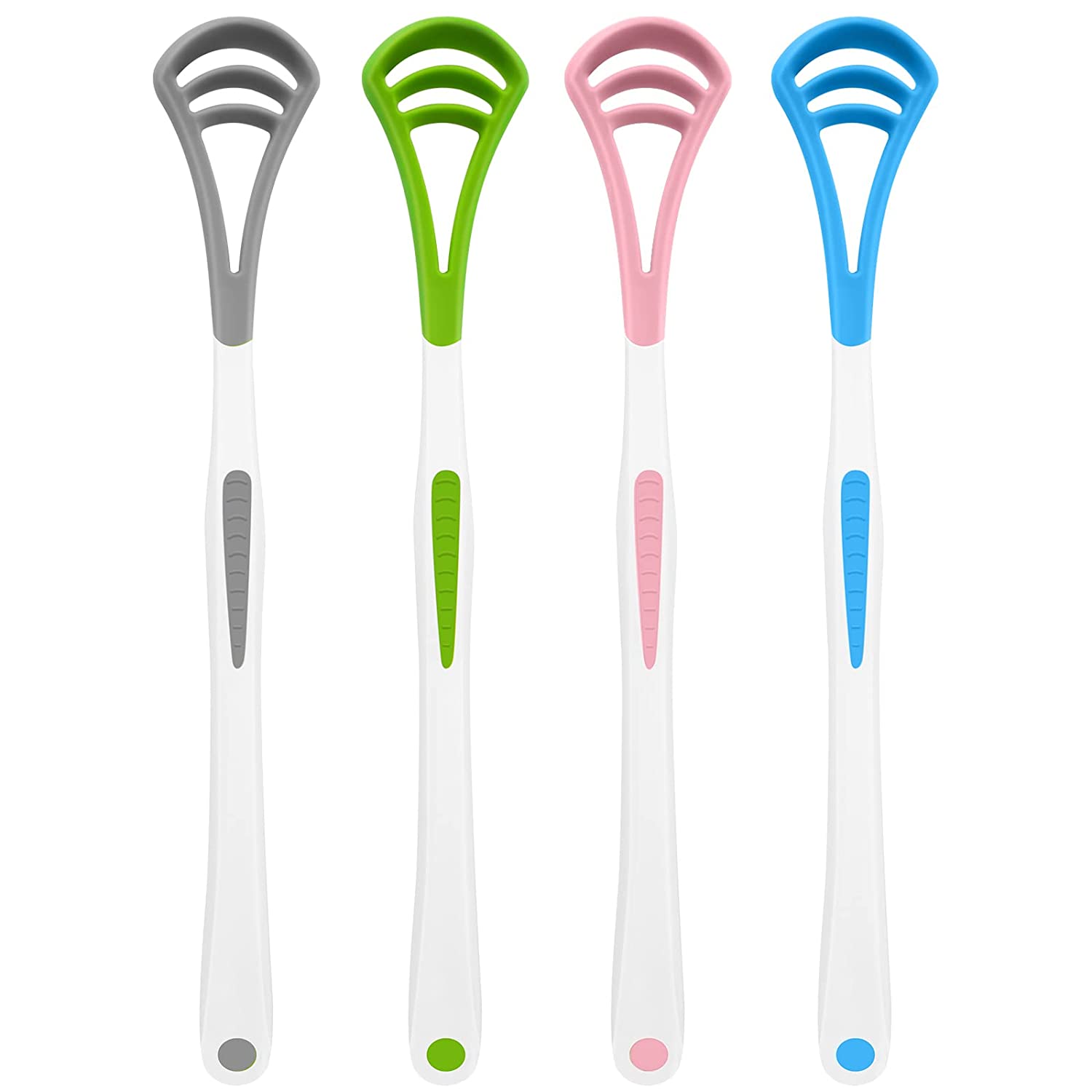 JOSALINAS 2PCS Tongue Cleaners Wide-head Double Blades Scrapers For Oral Care, Platinum Color