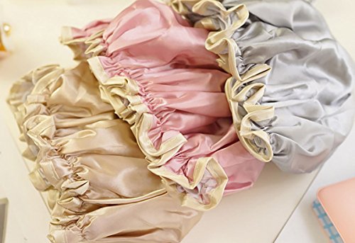 2Pcs Women Lady Waterproof Elastic Double Layers Shower Caps Bath Spa Hat Hoods Bathroom Products (Gray)