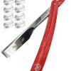 The razor cartridge is hypoallergenic, includes a lubricating strip with vitamin E, and has an anti-clog design for quick rinse.