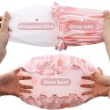 3 Pcs Kids Shower Caps Rabbits Prints Double Layers Children Shower Caps Peva Bath Hats For Kids Reusable Cartoon Animal Kids Bonnets Hair Covers F…