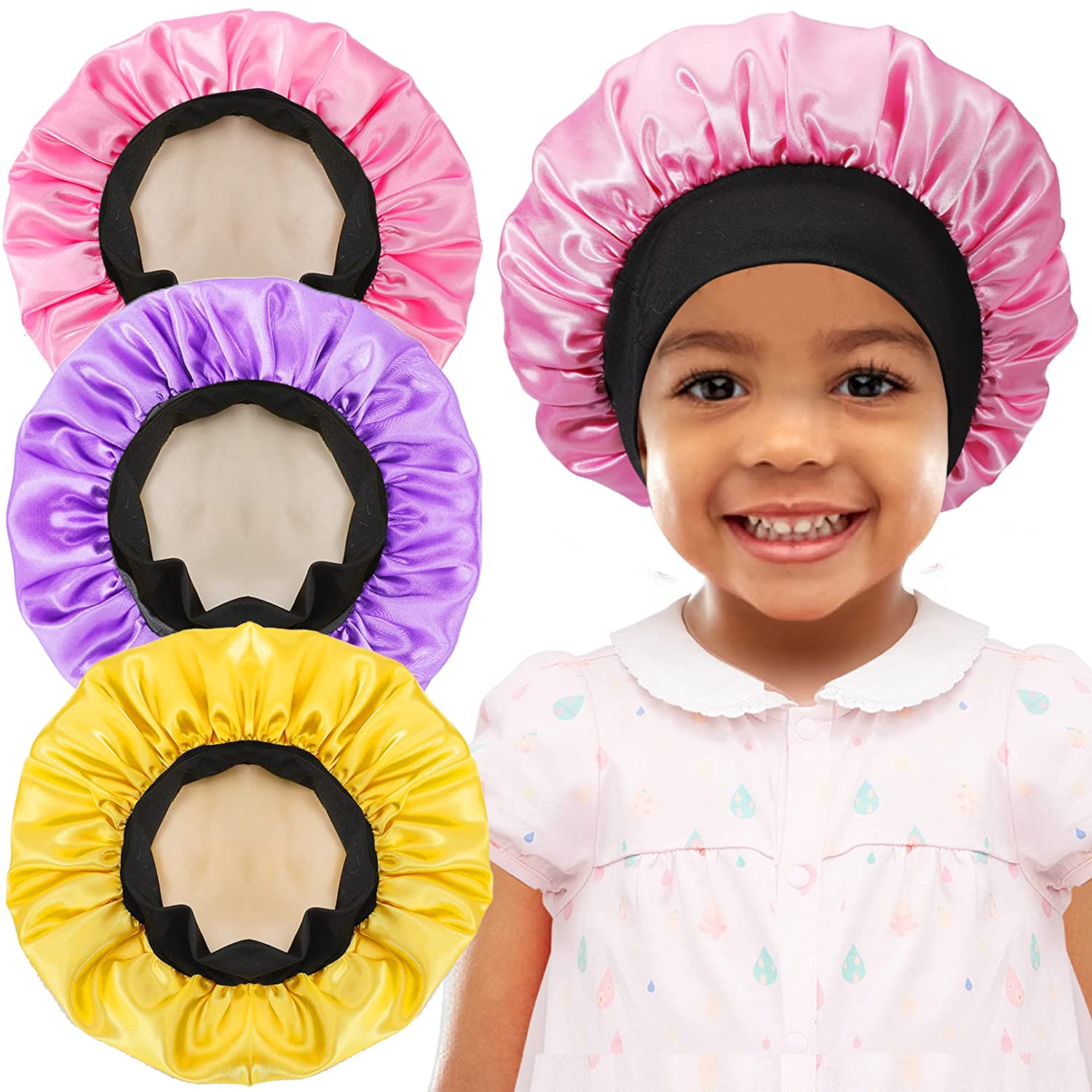 3 Pcs Soft Satin Bonnet Silk Bonnet Hair Wrap For Sleeping Silk Sleeping Cap With Wide Elastic Band Night Sleep Cap Bonnets Hair Cover Single Layer…