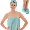 Machine WashableFor regular cleaning, toss your towel turban for wet hair, wrap around towel, and memory foam slippers in the washing machine.