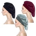 Feature: Equipped with a durable elastic band to keep it in place, even while you sleep. No more waking up with frizzy hair! Keep your hairstyle looking fresh and amazing. Absolutely sofe, breathable and hypoallergenic for maximun comfort. This product is designed to accommodate even the most restless of sleepers. One size fits most. 100% polyester with silky feel. Specification: Item Name: Sleep Cap Material: Satin fabric + Elastic Cloth Size: 30cm/11.8 inches in diameter Quantity: 3pcs/set Color: Black + Silver + Wine red Notes: Hand wash is recommended and do not bleach. Please refer to the measurement, tiny measuring error is allowable in normal range. There might be a little color difference due to the monitor, camera or other factors. Package include: 1 X black satin sleep cap 1 X silver satin sleep cap 1 X wine red satin sleep cap