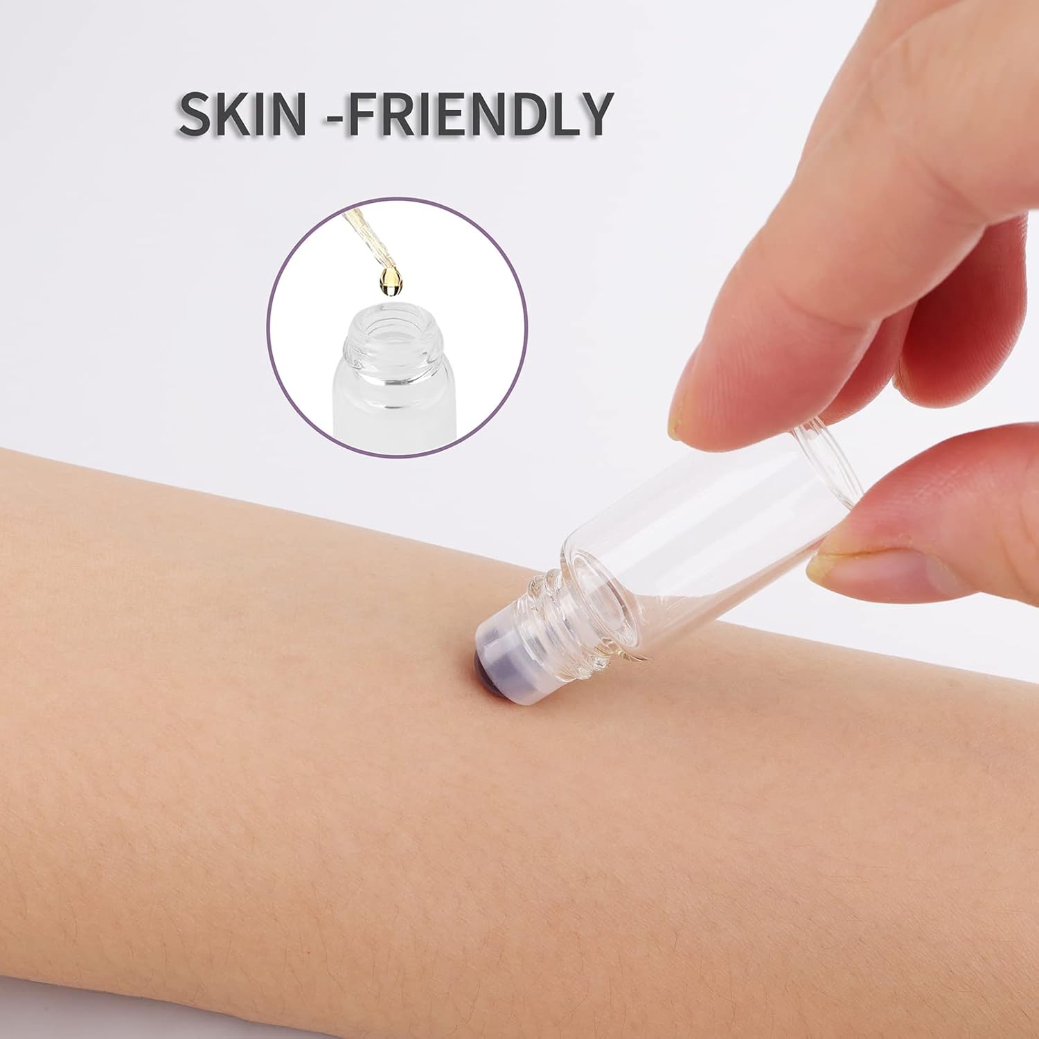 73 inches Material: Glass bottle body +Purple glass roller ball+ Plastic Cap Features: Corrosion-resistant, Eco-friendly, Reusable, Leak-proof, Anti-UV.