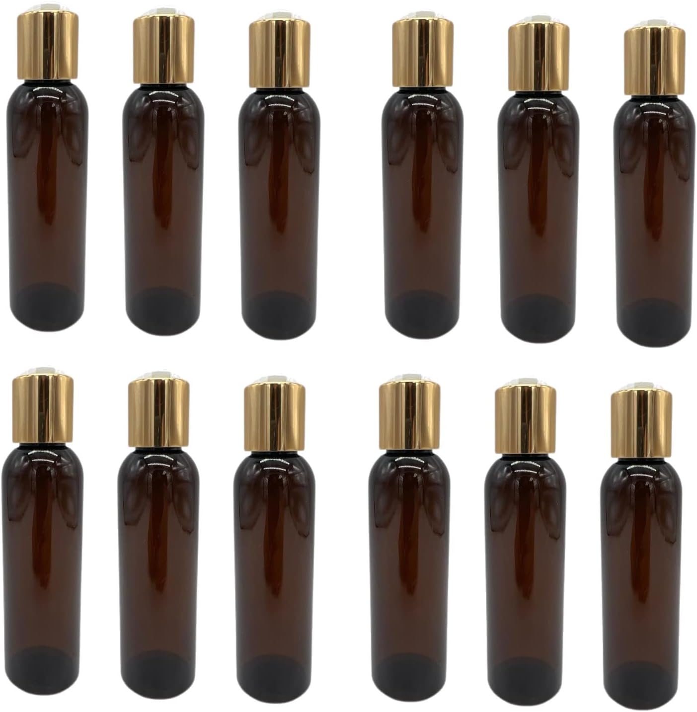 Uses: 4 oz Amber Plastic bottle with gold disc caps are the perfect portable addition to your household cleaning supplies.