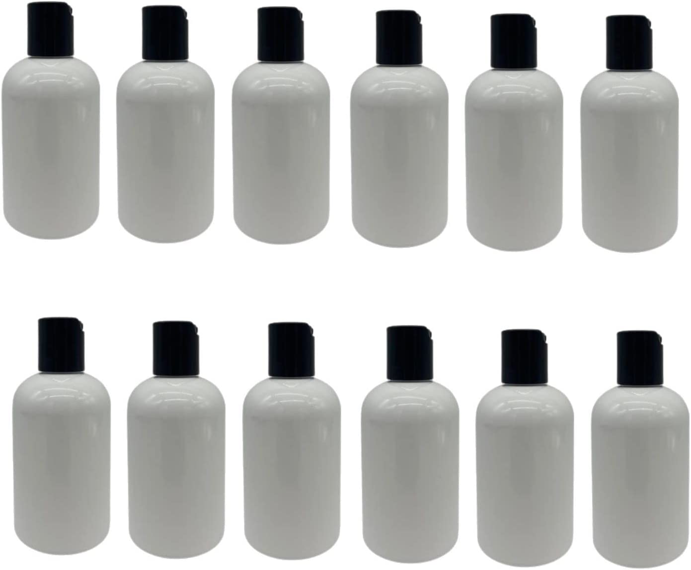 4 oz White Boston BPA FREE Bottles – 12 Pack Empty Refillable Containers – Essential Oils Cleaning Products – Aromatherapy | Smooth Black Disc Cap – Made in the USA – by Natural Farms