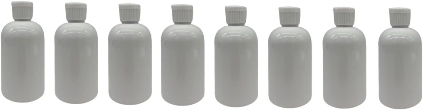 4 oz White Boston BPA FREE Bottles – 8 Pack Empty Refillable Containers – Essential Oils Cleaning Products – Aromatherapy | White Spout Cap – Made in the USA – by