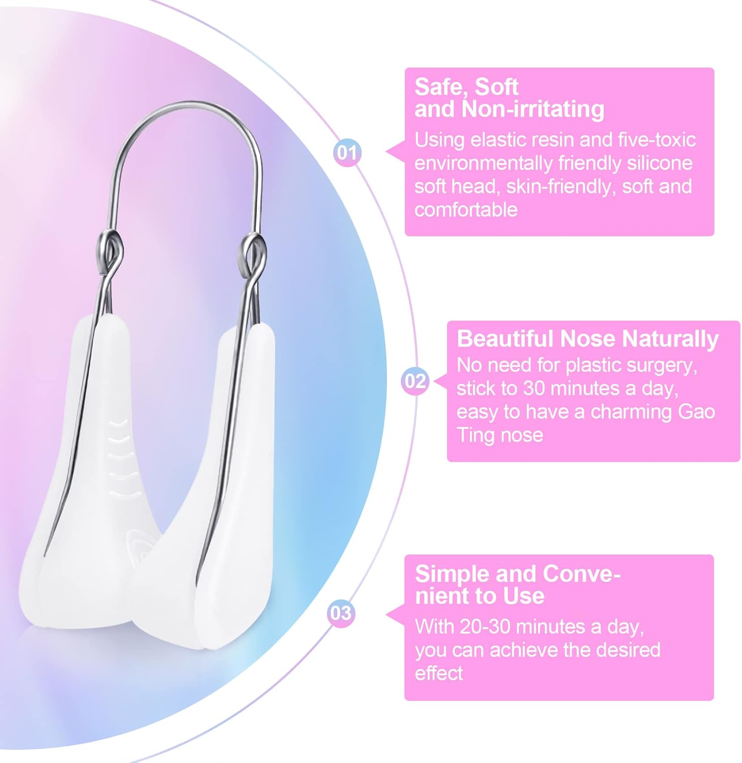 Item Name:PAGOW 4 Pack Nose Shaper Lifter Clip,Soft Silicone Beauty Up Lifting Nose Shaperes,Wide Crooked Nose Corrector for Men/Women,Girls,Ladies (4 Color :Blue,White,Pink,Green) Package includes: 4 x Wide Crooked Nose Corrector Tips: Please allow measurement error.
