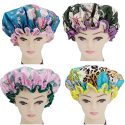 These shower caps contain a beautiful polyester satin outer layer and a soft EVA inner layer.