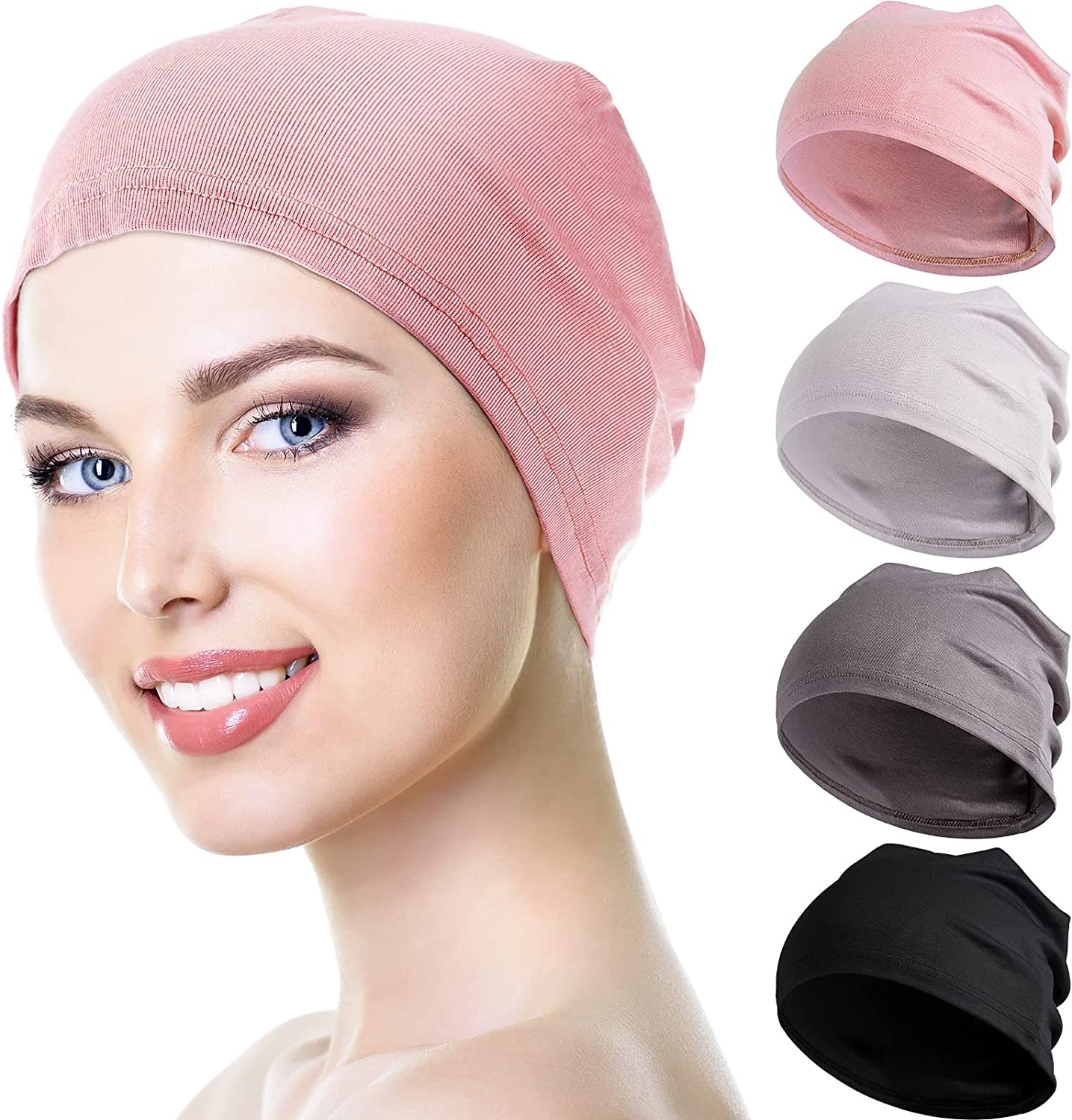 Features:Various wearing ways:This womans skull cap can be worn under a summer hat for added warmth and coverage, wear it as a sleep cap to catch falling hair and keep the head warm, or use it during daily life when you dont want to wear a wig.Ideal gift choice:The cotton skull caps for women are sweet gifts that can be given to your mother, grandmother, friends who are worrying about losing hair, which can bring them a comfortable wearing experience.Specifications:Material: bamboo viscoseColor: black, light gray, pink and dark graySize: one sizePackage includes:4 x Lightweight skull caps Notes:Manual measurement, please allow slight errors on size.The color may exist slight difference due to different screen displays.