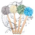 4 Pieces Loofah Back Scrubber Bath Sponge With Wooden Handle, Long Handled Sponge Mesh Pouf Shower Exfoliating Bath Shower Body Brush Luffa Bath Back Brush For Women Men (White, Grey, Blue, Green)