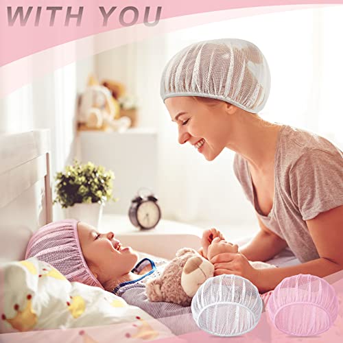 4 Pieces Mesh Sleep Cap Hair Net For Sleeping Women Hair Curler Net Night Mesh Bonnet For Curly Or Frizzy Hair Protection Factory Kitchen Warehouse Worker(White, Pink)