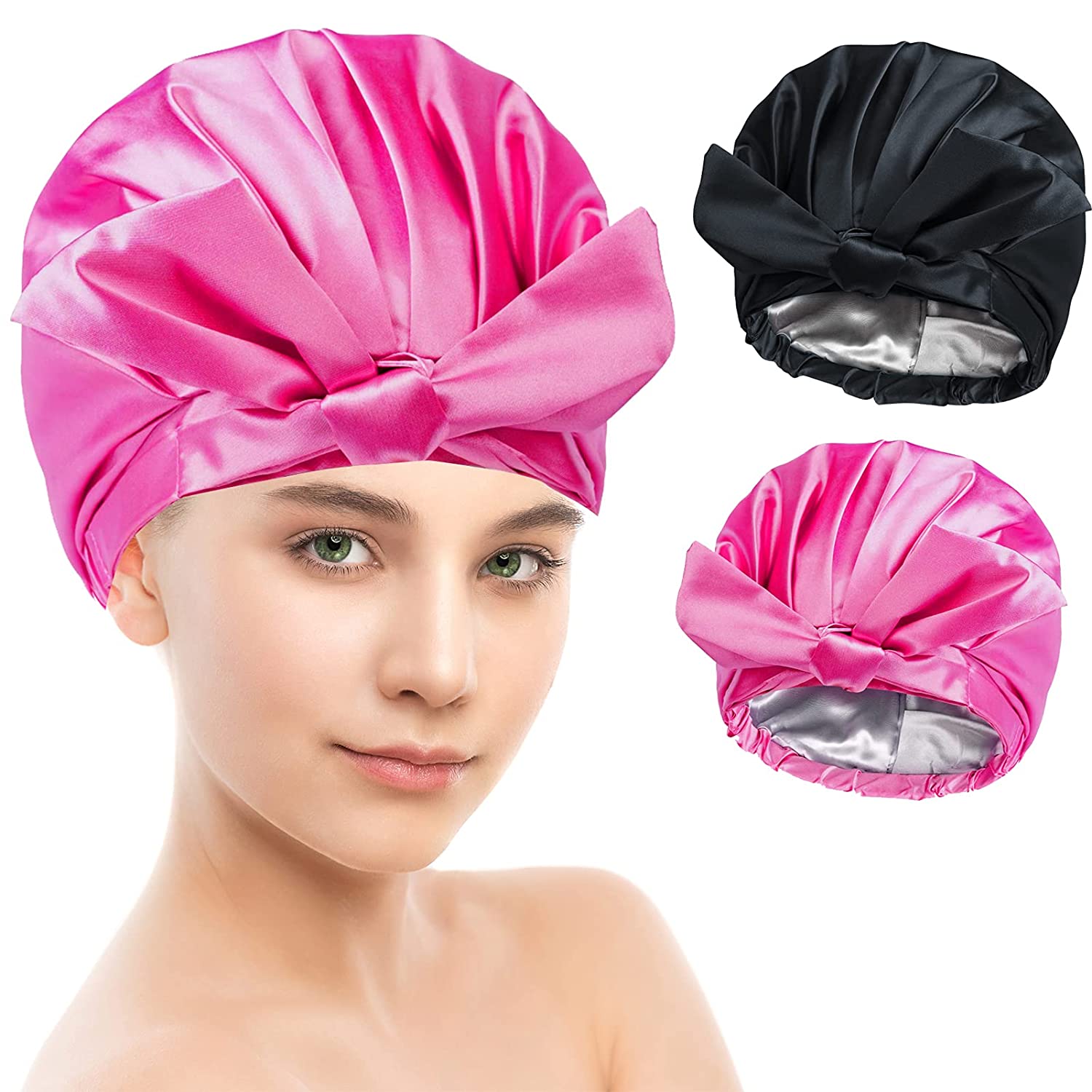 4 Pieces Satin Lined Sleep Cap Slouchy Beanie Slap Hat For Women,Men Caps Modal Closure Adjustablele Headwear Cap, Dark Grey,Grey, Dark Blue,Black,…