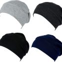4 Pieces Satin Lined Sleep Cap Slouchy Beanie Slap Hat For Women,Men Caps Modal Closure Adjustablele Headwear Cap, Dark Grey,Grey, Dark Blue,Black,…