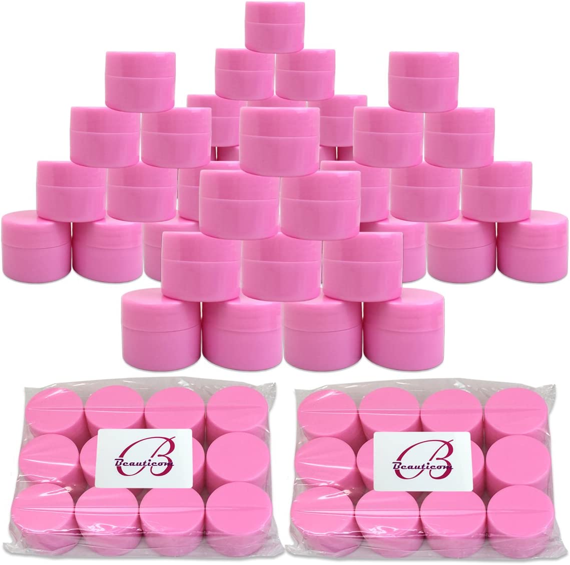 7G/7ML Pink Container Jars Reusable Double Wall Jars to Store Creams, Lotions, Make Up, Cosmetics, Lip Balm, Lip Gloss, Scrubs, Salves, Nail Accessories, Charms, Beads, Small Jewelry and More Can Be Used For Mixing or Sampling Beauty or Health Products Lined Lids Makes a Tight Seal to Prevent any Spills or Leaks Opaque Color to Prevent Light/Photo Sensitive Products from Damages