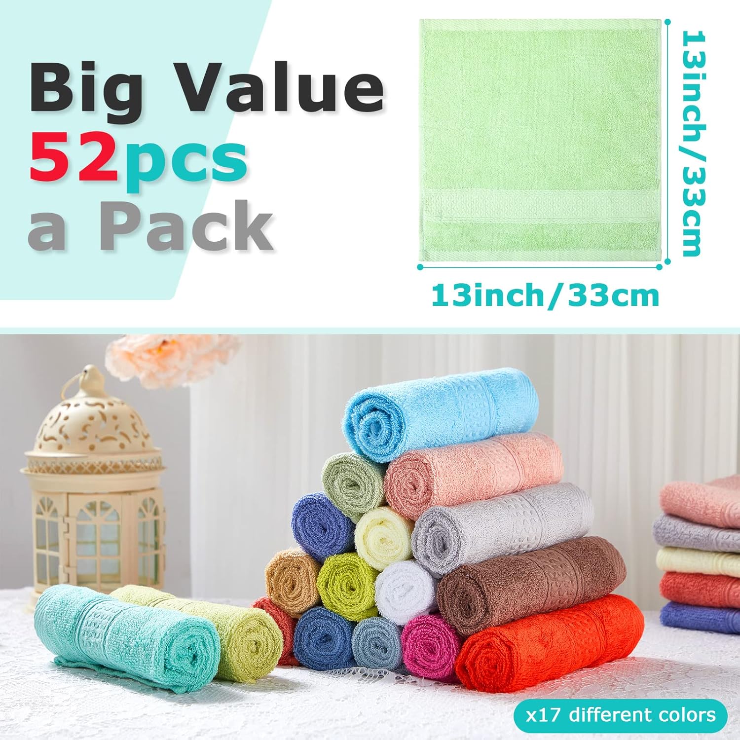 13 x 13 inches/ 33 x 33 cmPackage includes: 52 x Face towels washclothsNotes: Manual measurement, please allow slight errors on size.