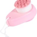 Facial Cleansing Brush 2 in 1 for Face Exfoliation, Soft Microfiber Bristle Brush for Pore Deep Cleansing, Dual Face Silicone Scrubber Brush for Skincare with Lid, Pink