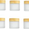 ✔ 6 Pack 30ml/1oz Empty Jars Refillable Round Frosted Glass Cosmetic Cream Jar Bottle Wood Grain Lid Cosmetic Container Glass Cream Box Lotion Cream Pot Jars for Makeup Lotion Lip Balm.