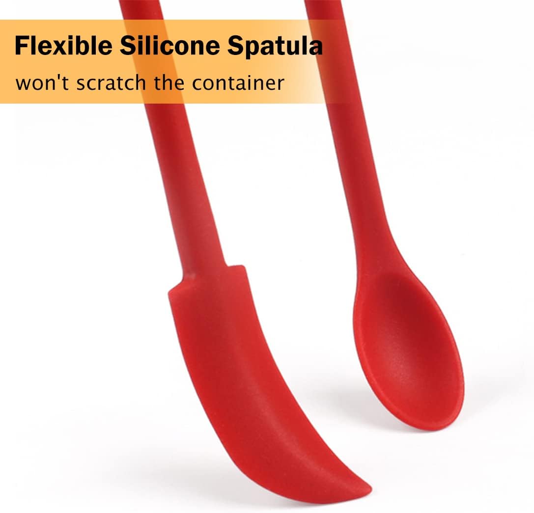 Description: Material: Silicone + Stainless Steel Temperature resistance: minus 40°-200° Scooper size: normal: 125mm, after telescopic: 247mm Spatula size: normal: 128mm, after telescopic: 247mm*14mm double-ended tiny silicone spoon spatula size: 230mm Package Includes: 4pcs x Silicone Telescopic Spatula Scooper Multipurpos, 2pcs x double-ended tiny silicone spoon spatula