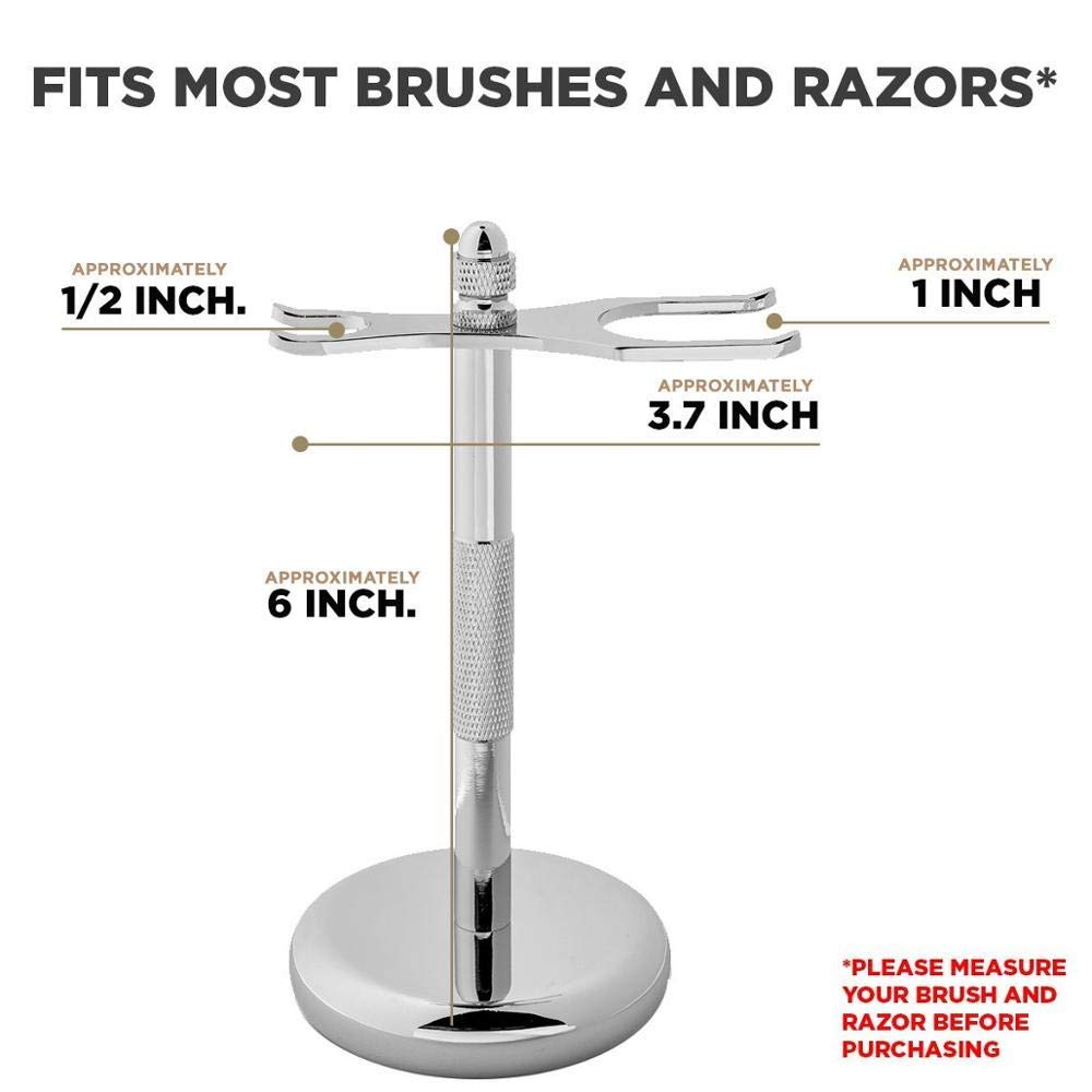 • ATTRACTIVE: This tall brush and razor shaving stand is sturdy, attractive and keeps your brushes secure and dry. Our Chrome stainless steel brush and razor stand is a basic way to store shaving brush.