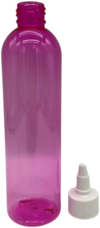 Uses: 8 oz Pink Plastic bottle with white twist top caps are the perfect portable addition to your household cleaning supplies.