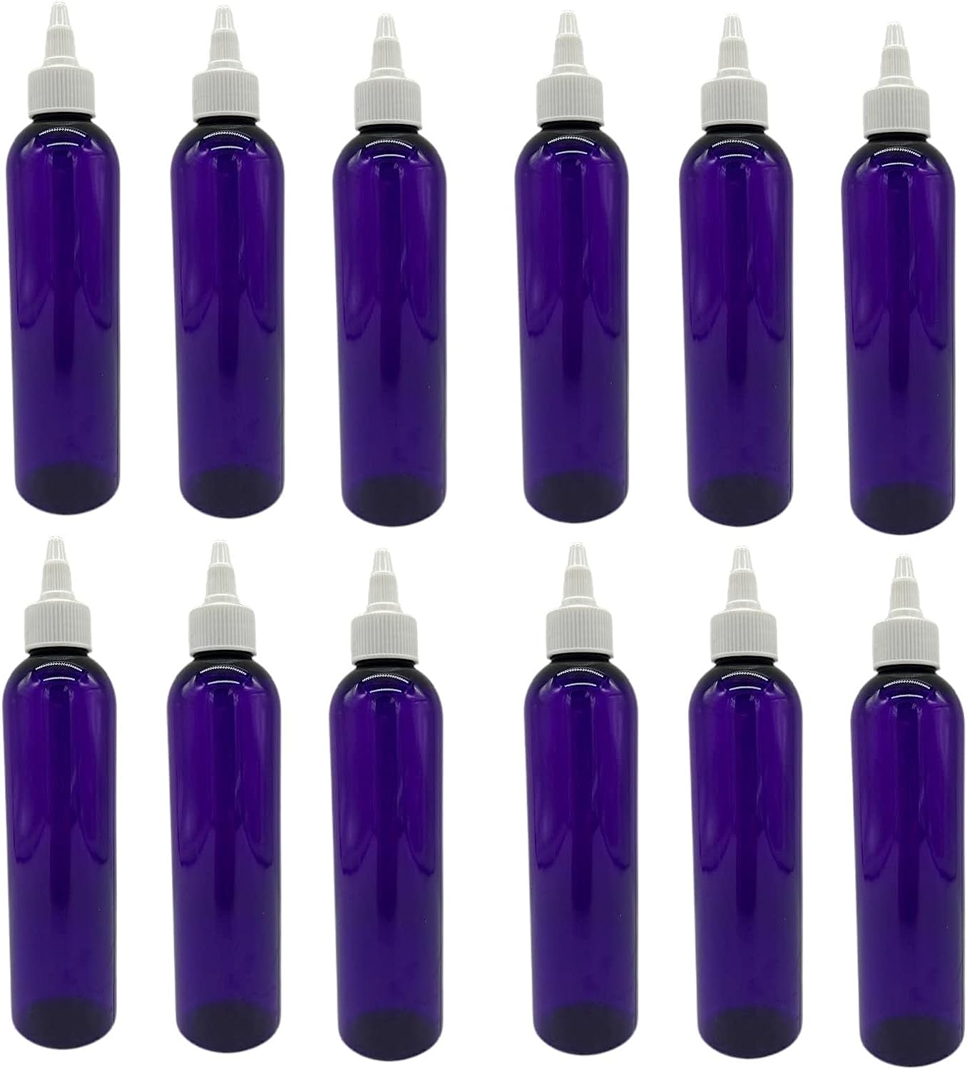 Specifications: Material: Plastic Quantity: 12 pack/set Shape: Cosmo Round Packaging: 12 pieces X 8 oz purple plastic bottle with white twist top caps.