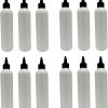 Specifications: Material: Plastic Quantity: 12 pack/set Shape: Cosmo Round Packaging: 12 pieces X 8 oz white plastic bottle with black twist top cap