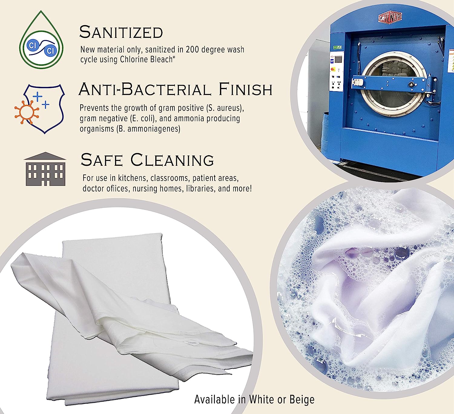 presents its Sanitized line of wiping rags. These new rags are sanitized and chemically treated at our facility in Chicago and are ready for use as soon as they come out of the bag! Ideal for use in kitchens, classrooms, patient areas, doctor offices, nursing homes, libraries and more! This particular item is made from woven cotton fabric. As a result, it is great for wiping down tables or cleaning up messes!