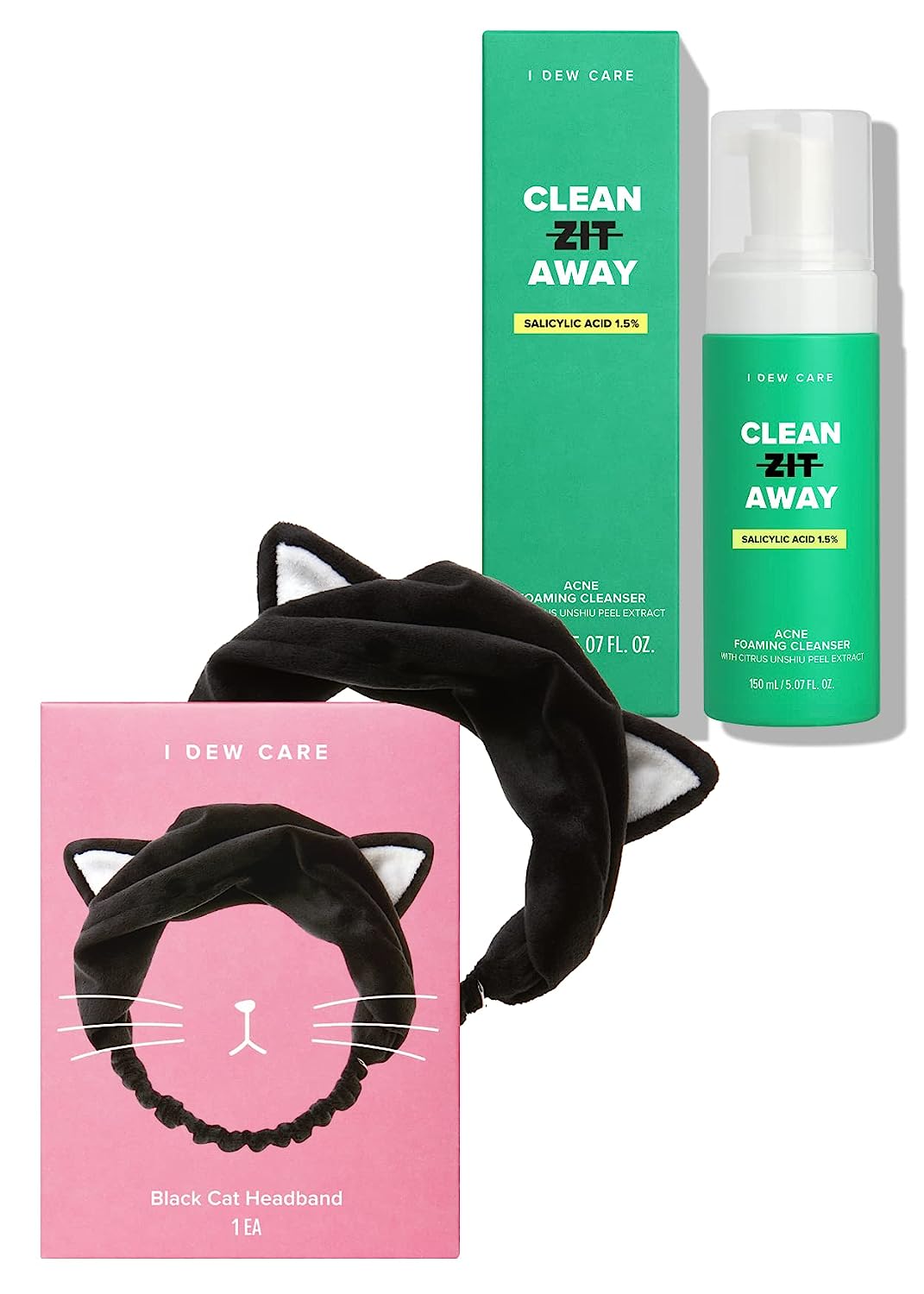 Acne Foaming Cleanser – Clean Zit Away, 5.07 Fl Oz + Face Wash Headband – Black Cat, 1 Count Bundle