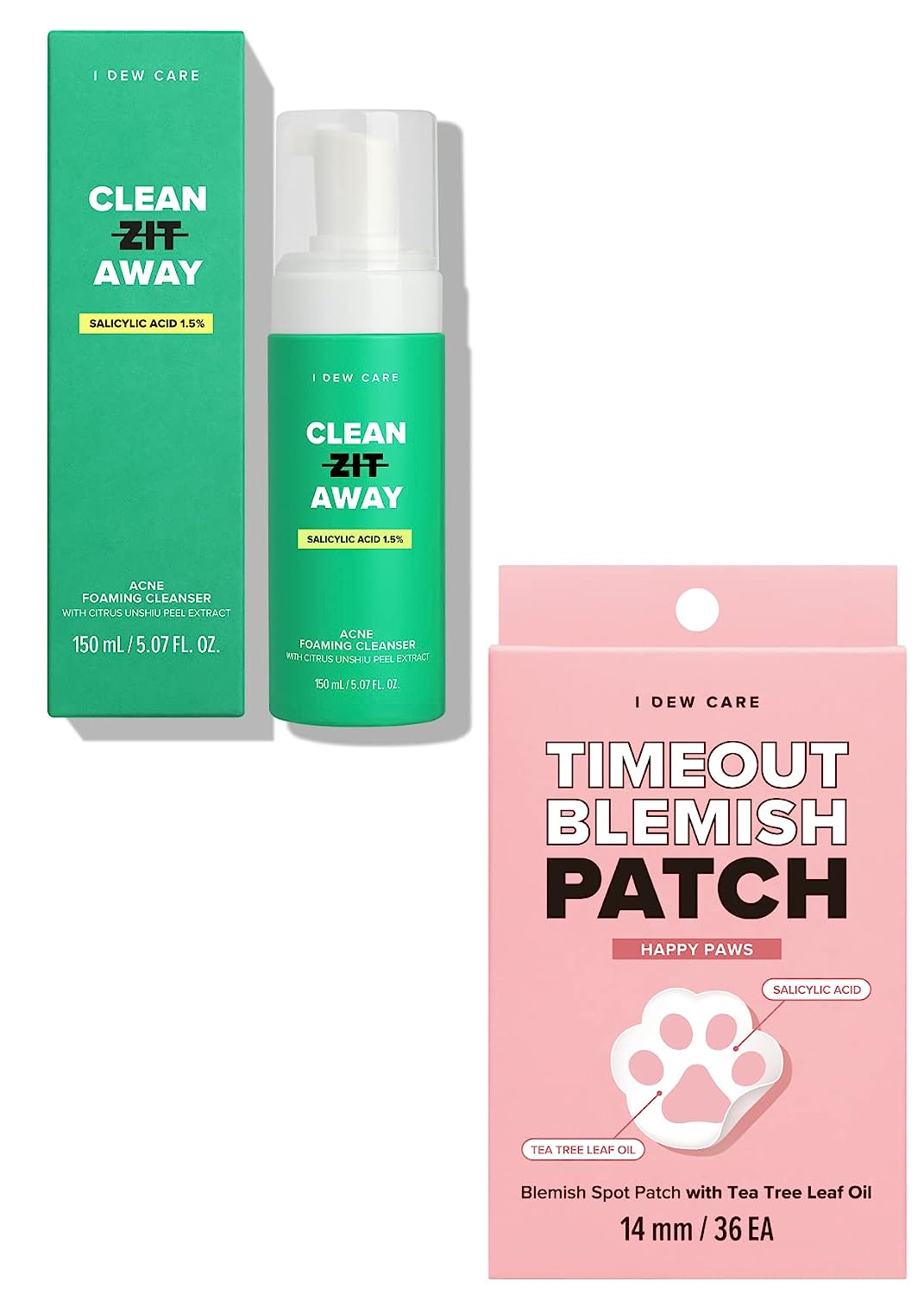Acne Foaming Cleanser – Clean Zit Away, 5.07 Fl Oz + Hydrocolloid Acne Pimple Patch – Timeout Blemish Happy Paws, 36 Count Bundle