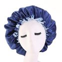 Adjustable Satin Bonnet Cap Night Sleep Hat Beauty Salon Comfortable Sleeping Bonnet For Curly Hair,Navy+Light Blue