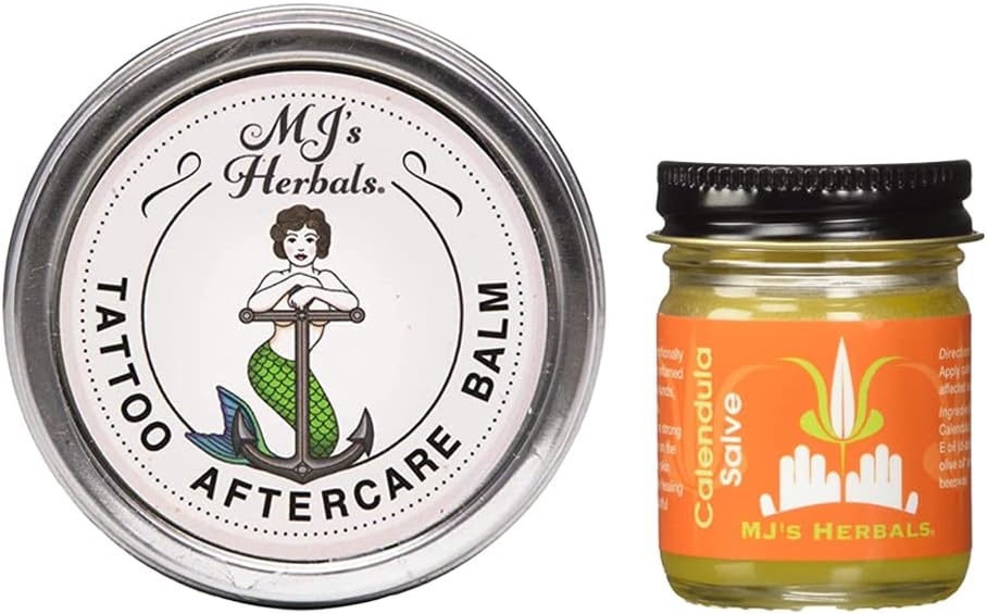After Care Bundle | Tattoo Balm + Calendula Salve | Tattoo Salve, Tattoo Cream, Tattoo Care Ointment, Moisturizer, Tattoo Lotion w/Organic Herbs | Calendula Ointment, Organic Calendula Cream