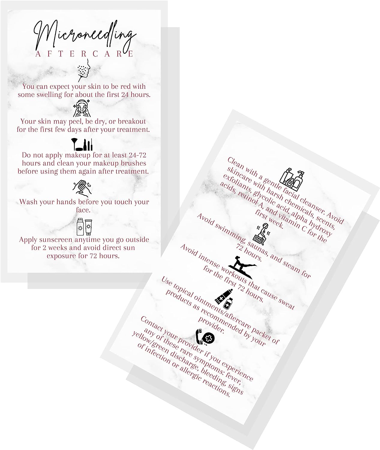 WHY BUY: As a licensed estheticians and medical professionals specializing in microneedling procedures-you need the best aftercare instructions with as much detail as possible! Having them printed on this nice quality card stock makes it even more likely your clients will keep their instructions and read them thoroughly.