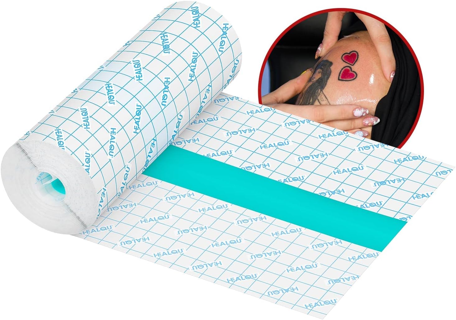 Waterproof Tattoo Dressing: To help ease your worries about touching water to your tattoo or open wounds, we have equipped our tattoo protective film with a strong adhesion which helps to keep moisture and water away from your skin while you take a shower, wash, or relax in the bathtub