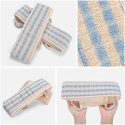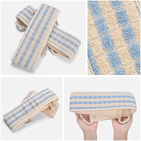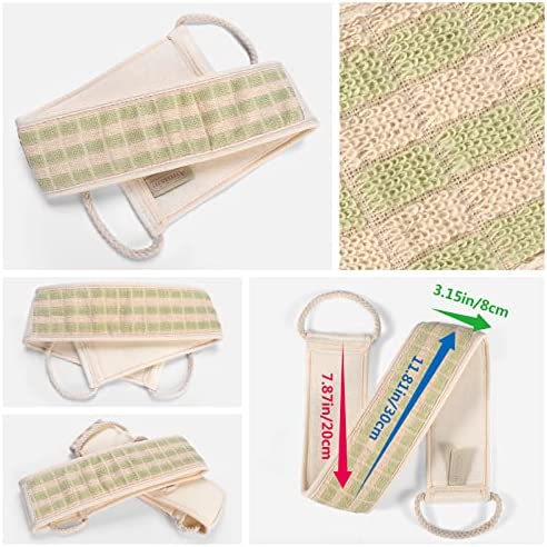 Good bath partner: Our exfoliating shower scrubber is consists of 2pcs linen back strap. 29.5×3.7inch. Please wet it in warm water to get soft before using it. To keep the exfoliating scrubber clean, simply toss it in the washing machine or hand wash.