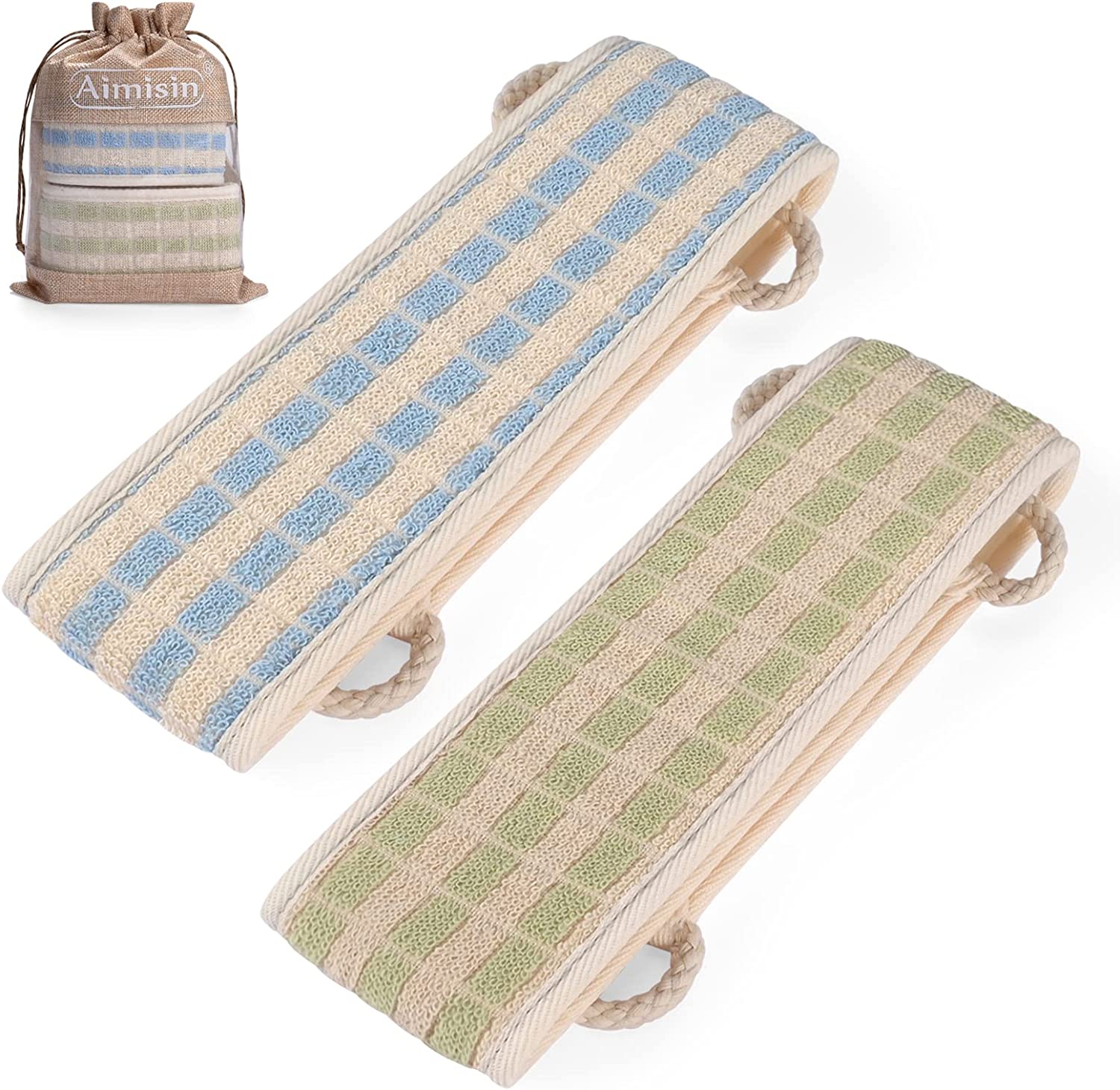 Full Coverage: Aimisin exfoliating scrubber can reach your whole body for cleaning. The length of back strap is wider and thicker than common back scrubber, which increases contact skin area. With thick rope at each end, make it easy to reach your whole back without hurting your hands.