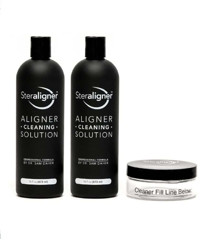 Simply pour the solution into the soaking dish, and in 3 minutes it’s ready! Powerful IngredientsTested by a recognized independent laboratory, the cleaning solution comprises of water, surfactant, polysorbate 20, sodium pyrophosphate, tetrapotassium salt, sodium bicarbonate, natural essential oil complex, sodium benzoate, sodium gluconate, 2-propanol, disodium EDTA, blue 1 Multipurpose UseNot just for Aligner Trays, the Solution can be used on Night Guards, Sports Guards, Sleep Apnea Mouthpieces, Retainers and any Invisialign, ClearCorrect, or any brand tray.