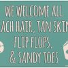 Welcome All Beach Hair Tan Skin Flip Flops Sandy Toes rug measures 2 by 3 feet and makes the perfect accent to any room.