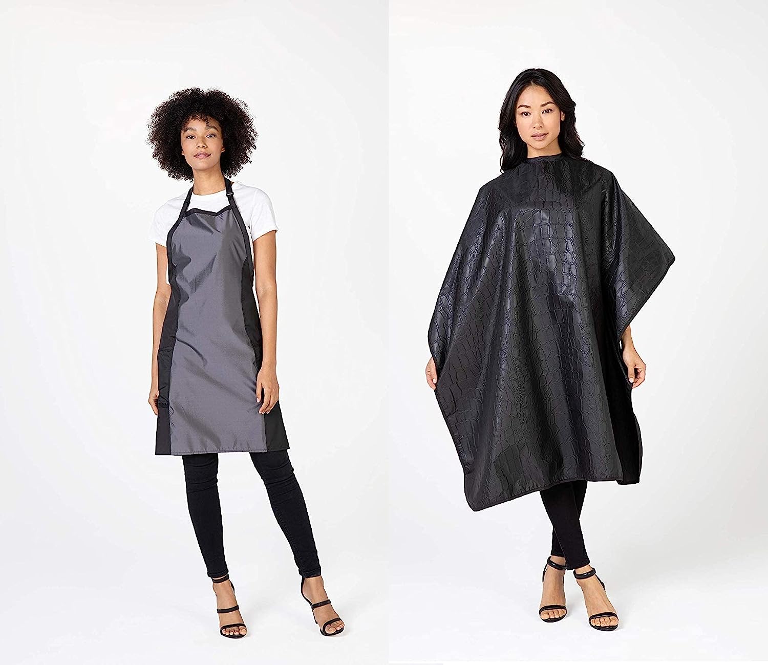 Other features of this slimming, stylish apron include bottom zipper pockets for easy hair removal and adjustable neck closure.