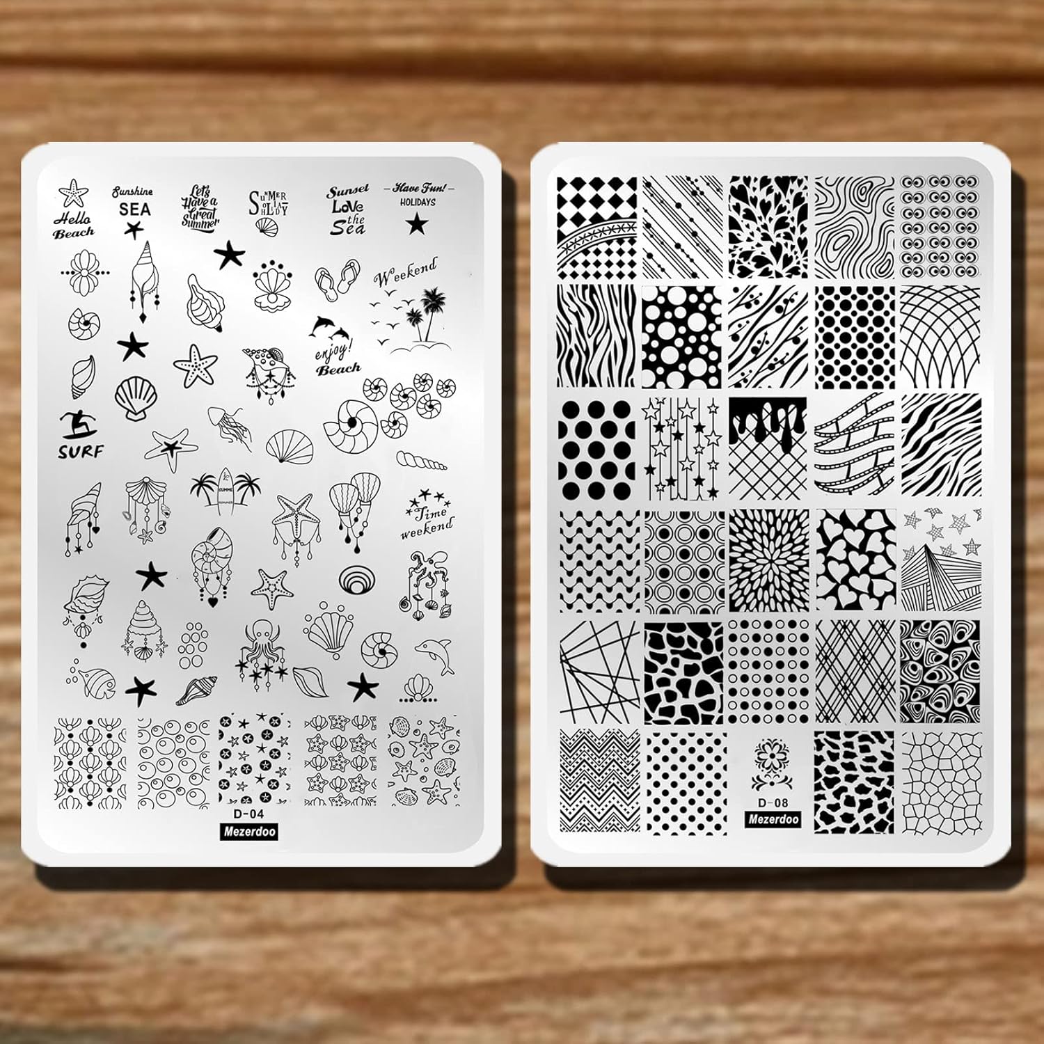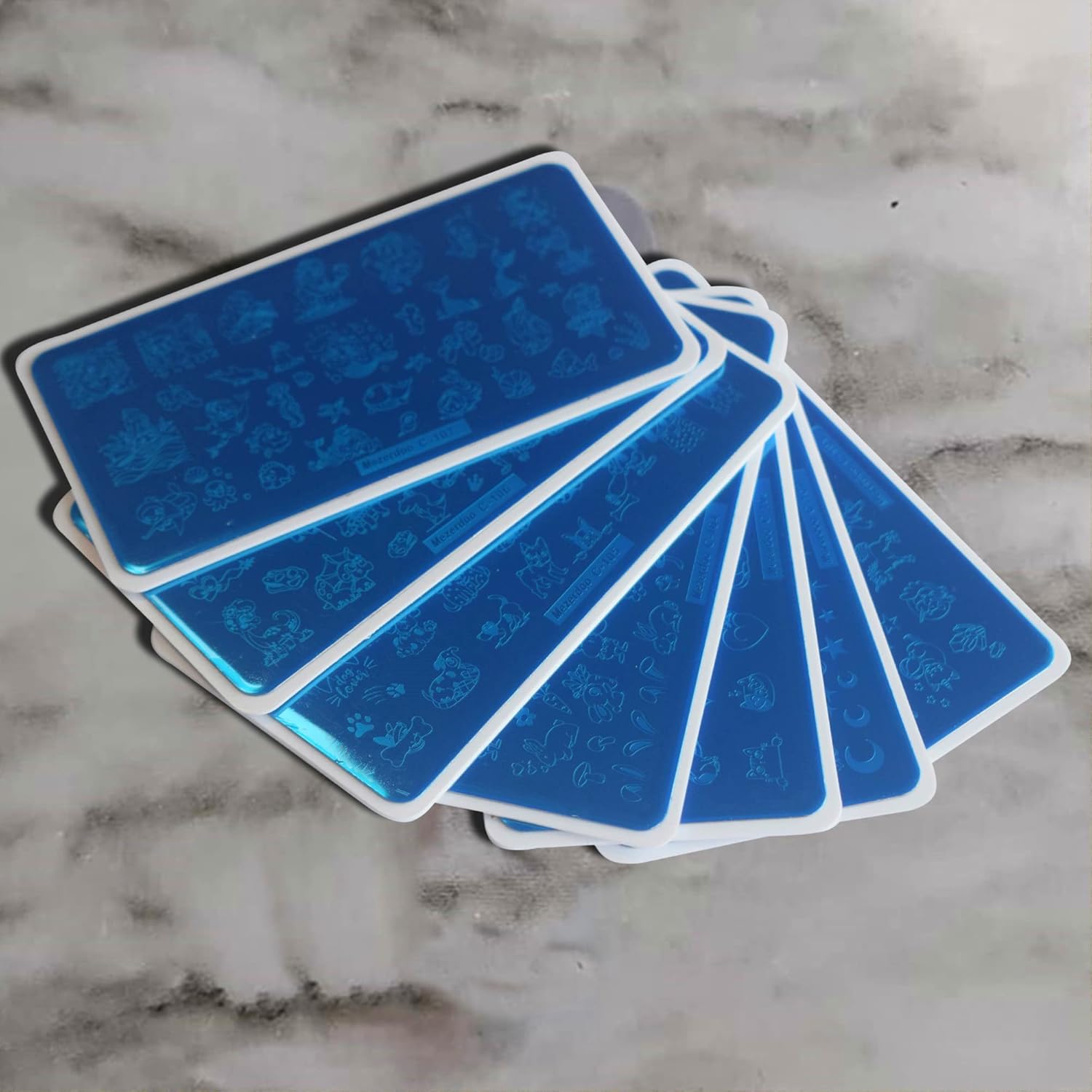 36inch)Material: Stainless Steel Flowers butterflies nail art decals nails supplies stamp manicure steel plate model Nail Stamping Accessories The Nail Art Stamping Plates Pattern:line,flower,cat claws,kittens,puppies,unicorns,rabbit dogs mermaid,space,fish,alien,dinosaur,star,heart,cute animals,Flower,Zebra Strips,Palm Leaf,Geometry, Letter,Words ,Spring Summer Autumn Pattern Design,more details are shown as picturesPACKAGE CONTENTS:2pcs Large and 7pcs small Nail Stamping PlateHOW TO USE:1.