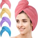 Microfiber Hair Wrap Towel, Double Layer Curly Hair Turban Towel for Women - Satin Hair Drying Towel for Curly Hair (Emerald and Pink)