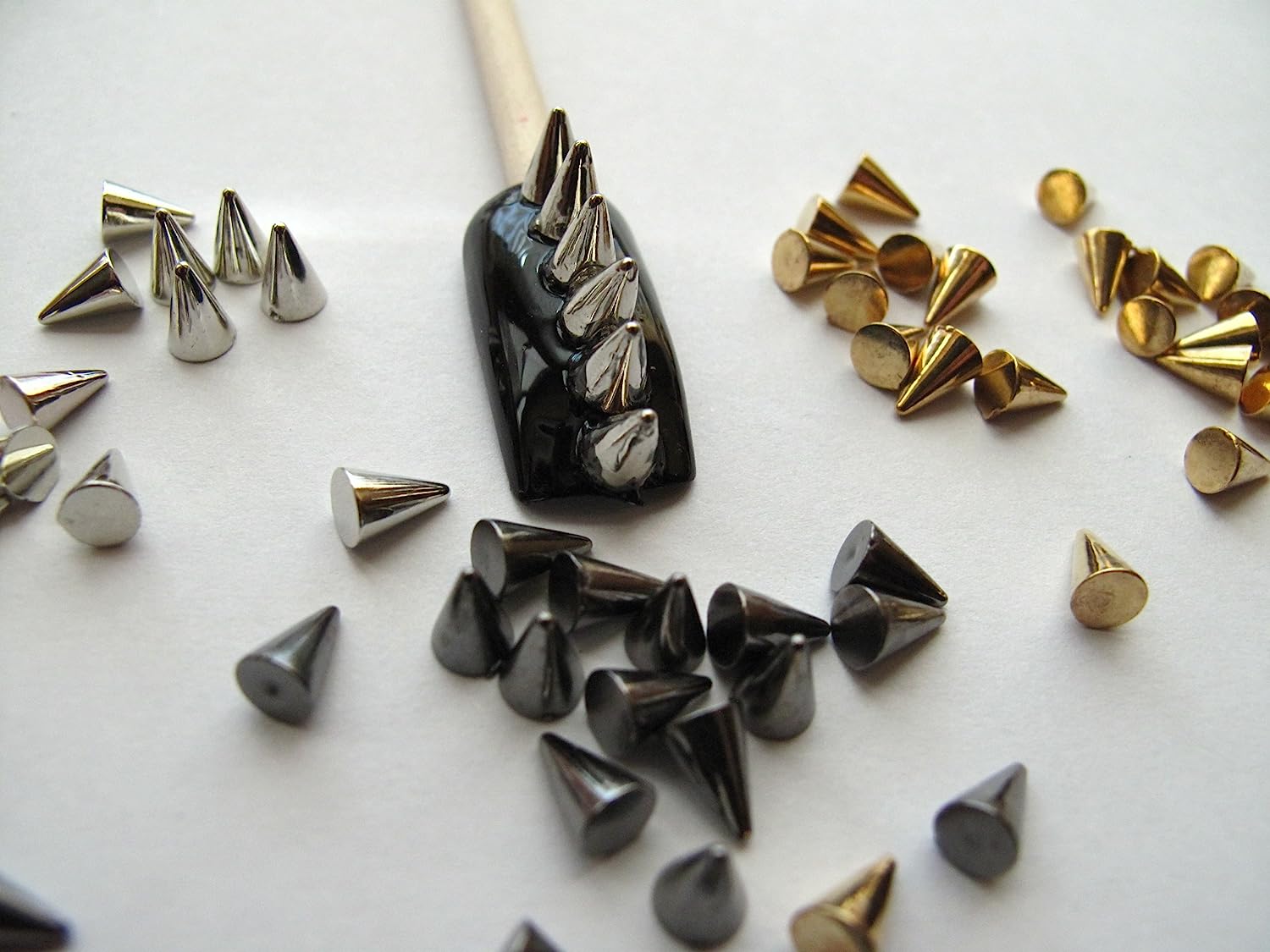 *** Nail Art 3d 150 Mix Cone Spike Studs Flat Back(50 Silver+50 Gold+50 Gunmetal) 4mm*5mm for Nails, Cell Phone ***Quantity : 150 Pieces Mix (50 Silver+50 Gold+50 Gunmetal)