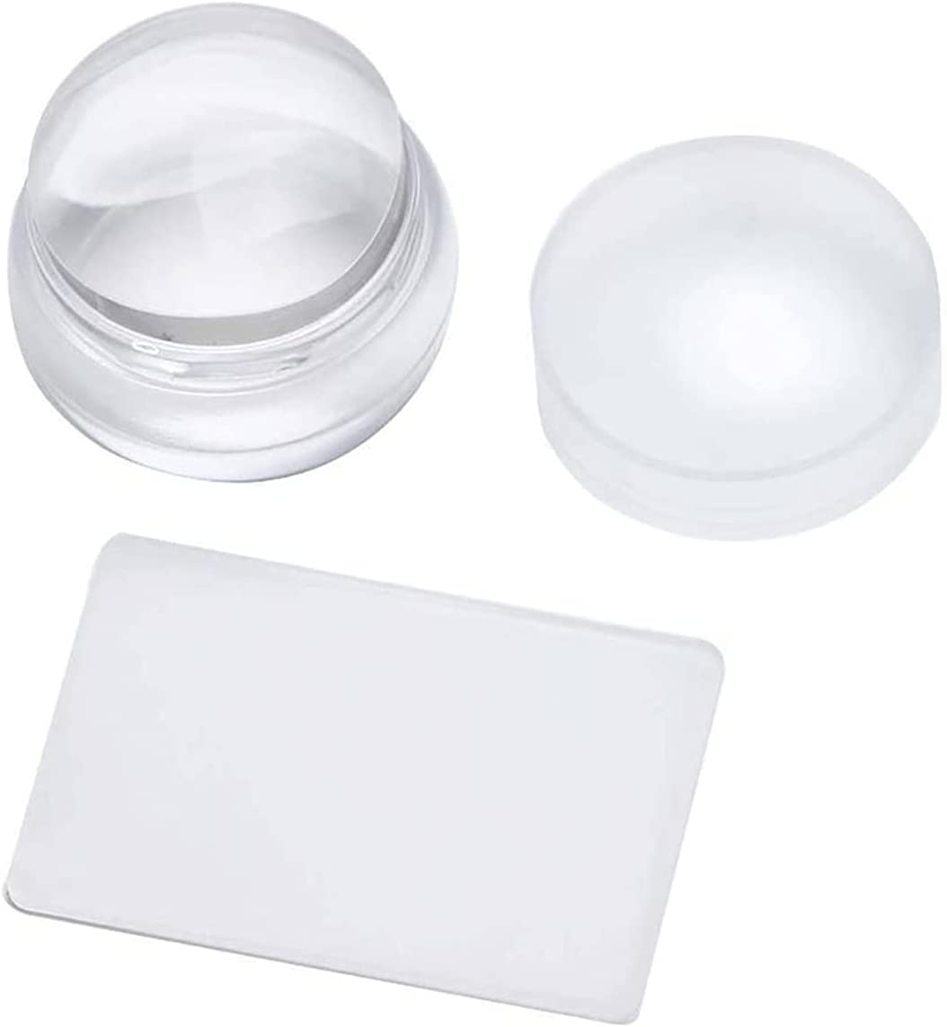Clear Silicone Nail Stamper: Clear for you to see the position where you want to place the pattern; with the efficient nail tool,Suitable for professional and home use.No deformation, good elasticity, anti-dirty, easy to use.