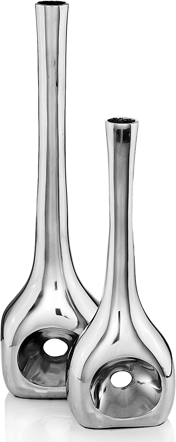 Buffed Aluminum Contemporary Site Hole Vases – 2pc Set.