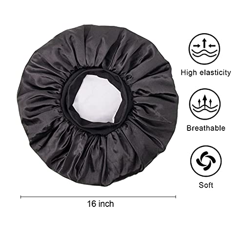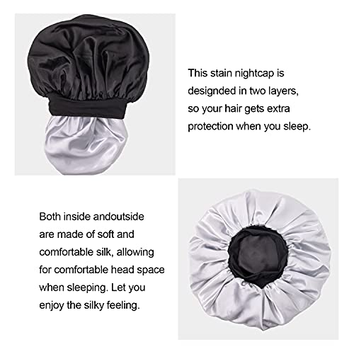 DOUBLE-LAYERED SILKY SATIN:Reversible and Versatile. This night cap reduces friction unlike previous single-layered satin cap having rough lining without satin lined.Both layers are silky satin fabric.This product can be worn not only during sleep,but also for makeup, bathing,or even doing the housework.It is really convenient in daily use.