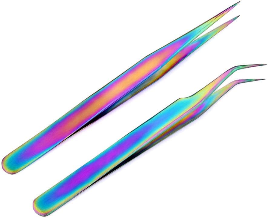 Aysekone 2 Pcs Rainbow Stainless Steel Curved Tweezers + Straight Tweezer for Rhinestones Picker Eyebrow Eyelash Tweezers Manicure Nail Art Tools : Beauty & Personal Care